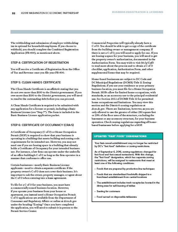 32 ©2018 WASHINGTON DC ECONOMIC PARTNERSHIP BUSINESS REGISTRATION & LICENSING