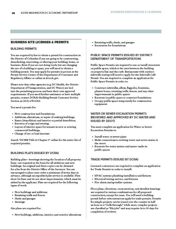 36 ©2018 WASHINGTON DC ECONOMIC PARTNERSHIP BUSINESS REGISTRATION & LICENSING