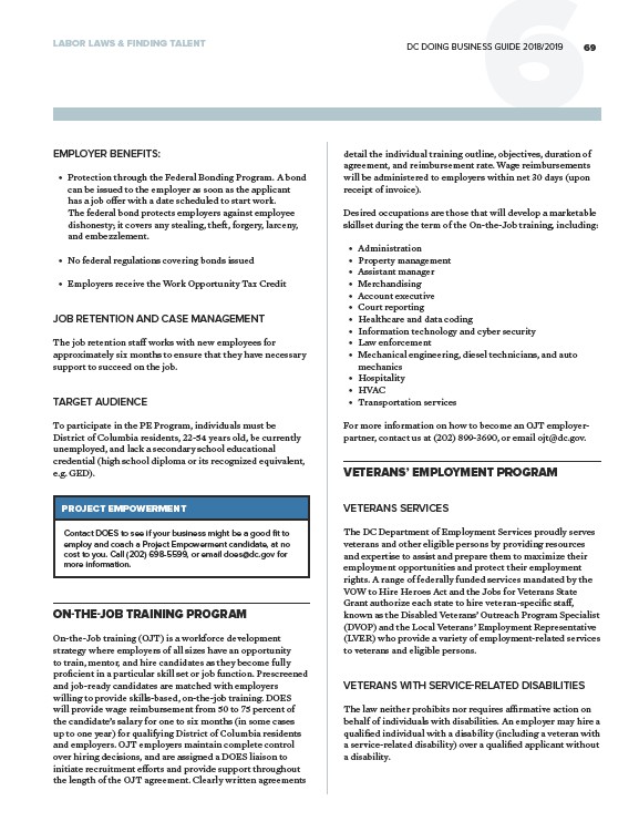 LABOR LAWS & FINDING TALENT DC DOING BUSINESS GUIDE 2018/2019 69