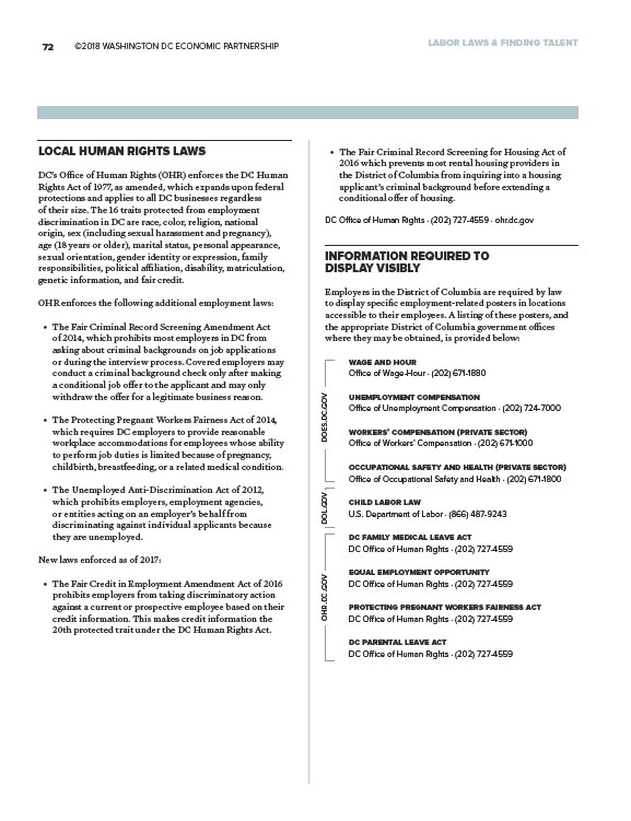 72 ©2018 WASHINGTON DC ECONOMIC PARTNERSHIP LABOR LAWS & FINDING TALENT