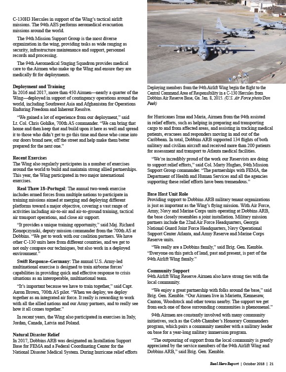 to support relief efforts,” said Col. Marty Hughes, 94th Mission