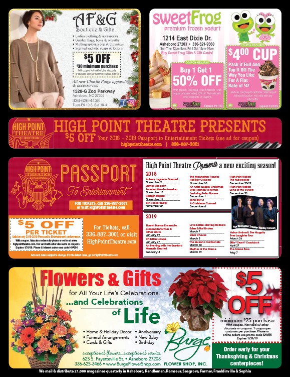 highpointtheatre.com | 336-887-3001 $5 OFF Your 2018 - 2019 Passport to Entertainment Tickets (see ad for coupon)