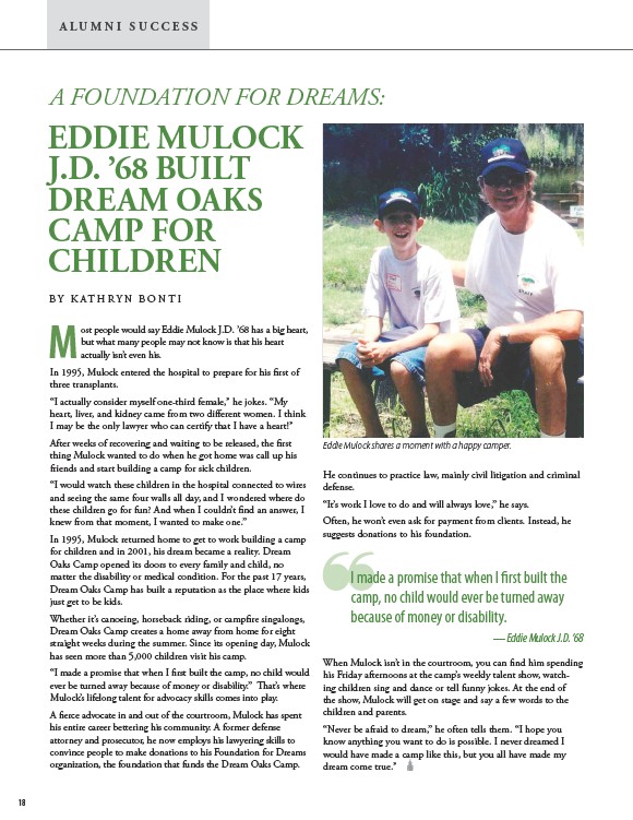 Most people would say Eddie Mulock J.D. ’68 has a big heart,