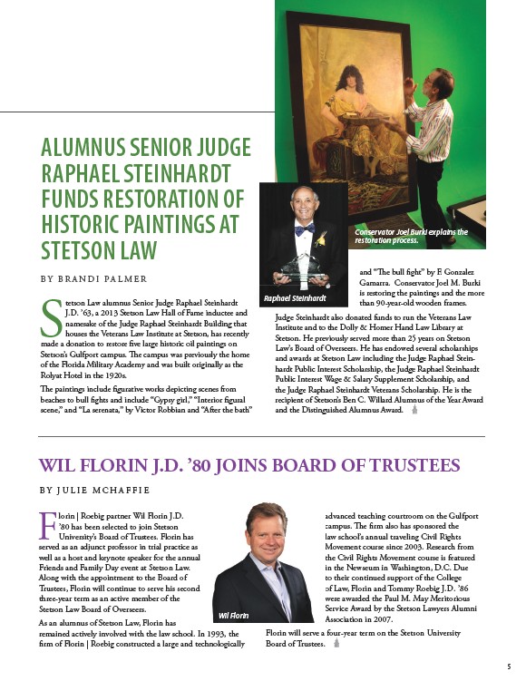 and awards at Stetson Law including the Judge Raphael Steinhardt