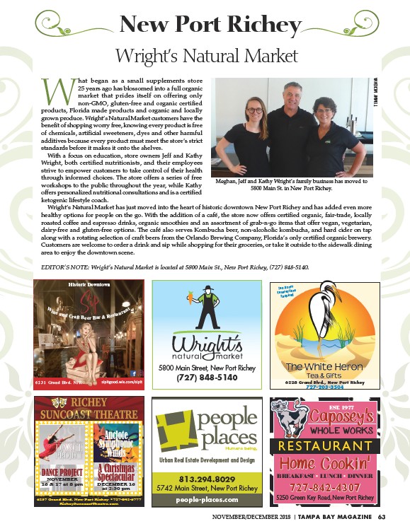 Wright’s Natural Market has just moved into the heart of historic downtown New Port Richey and has added even more