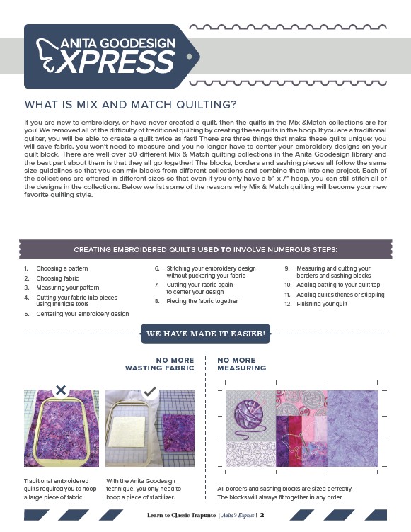 the designs in the collections. Below we list some of the reasons why Mix & Match quilting will become your new