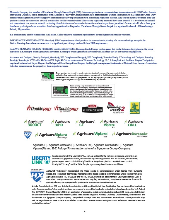 Ready®, Roundup®, VT Double PRO® and VT Triple PRO® are trademarks of Monsanto Technology LLC. LibertyLink and the Water Droplet Design® is a