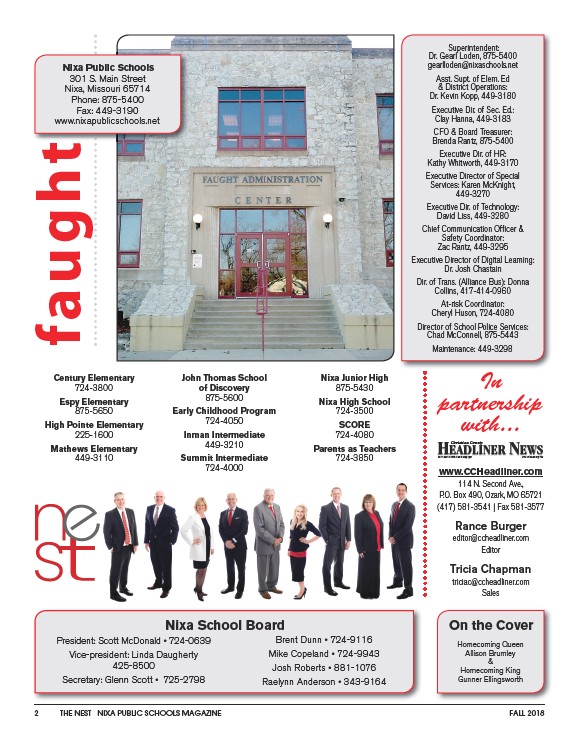 2 THE NEST NIXA PUBLIC SCHOOLS MAGAZINE FALL 2018 Nixa Public Schools