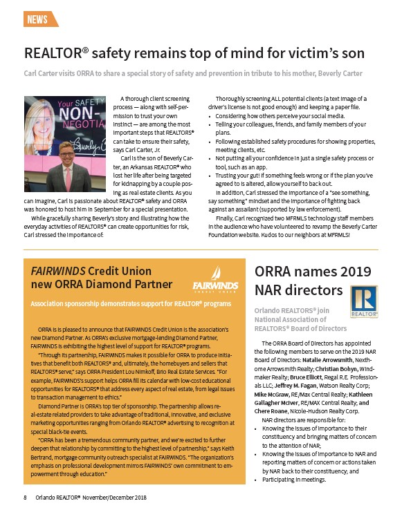 can imagine, Carl is passionate about REALTOR® safety and ORRA