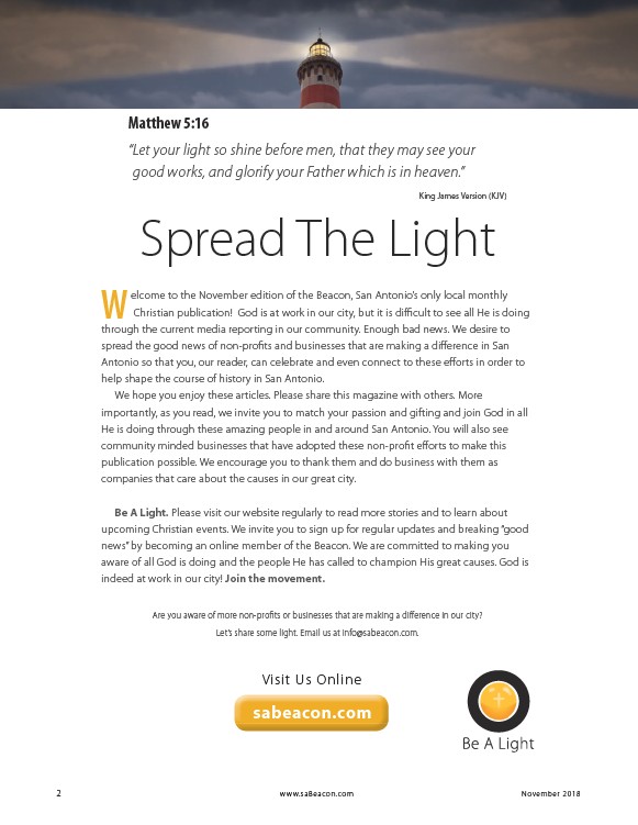 Welcome to the November edition of the Beacon, San Antonio’s only local monthly