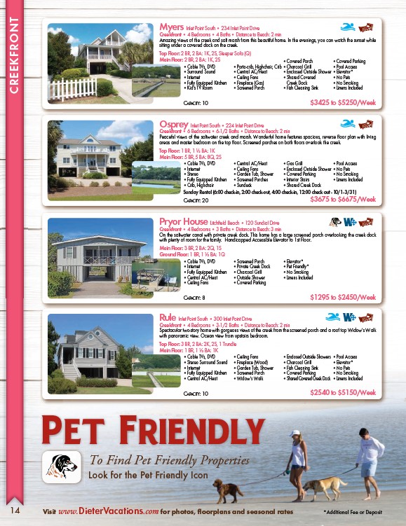 Visit www.DieterVacations.com for photos, fl oorplans and seasonal rates *Additional Fee or Deposit