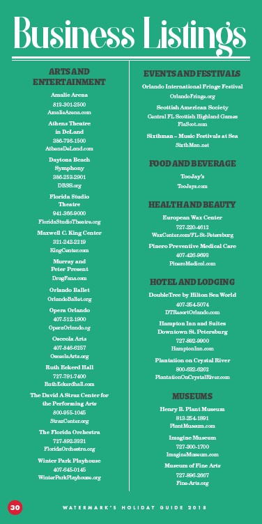 30 W A T E R M A R K ’ S H O L I D A Y G U I D E 2 0 1 8