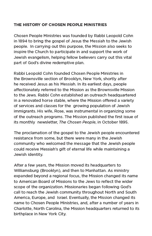 THE HISTORY OF CHOSEN PEOPLE MINISTRIES