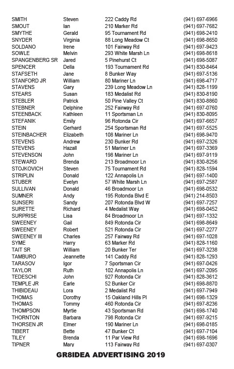 STAVENS Gary 239 Long Meadow Ln (941) 828-1199