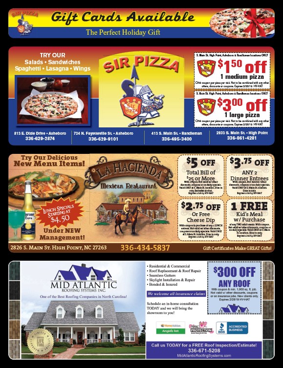 S. Main St. High Point, Asheboro & Randleman locations ONLY