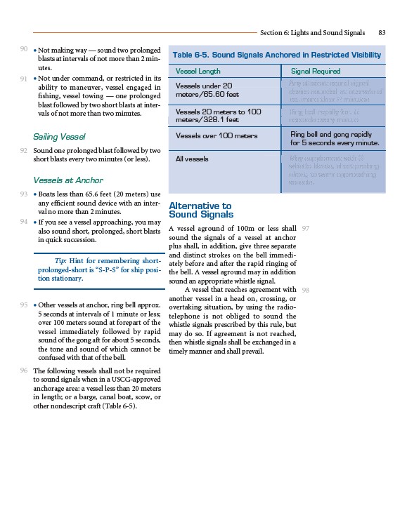 Table 6-5. Sound Signals Anchored in Restricted Visibility