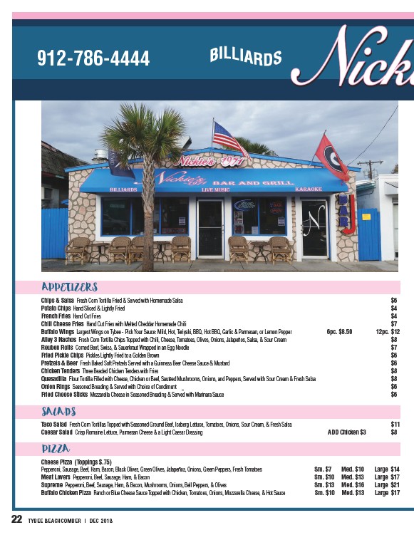 Buffalo Wings Largest Wings on Tybee - Pick Your Sauce: Mild, Hot, Teriyaki, BBQ, Hot BBQ, Garlic & Parmesan, or Lemon Pepper 6pc. $8.50 12pc. $12