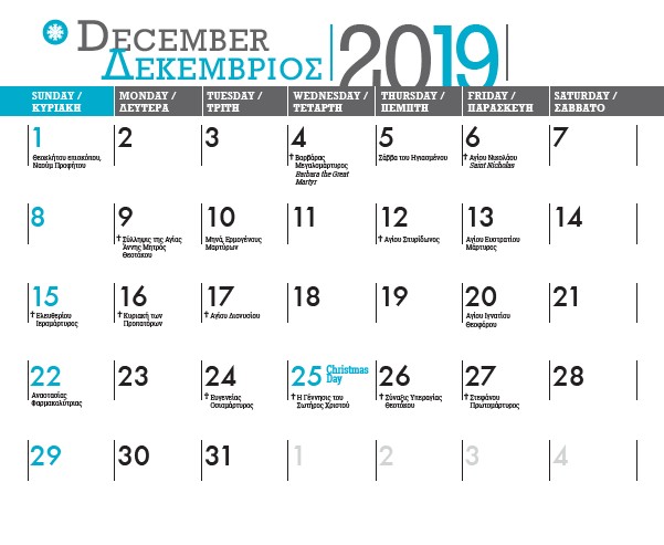 DECEMBER 2019 SUNDAY / MONDAY / TUESDAY / WEDNESDAY / THURSDAY / FRIDAY / SATURDAY / 1 2 3 4 5 6 7 8 9 10 11 12 13 14 15 16 17 18 19 20 21 22 23 24 25 Christmas Day 26 27 28 29 30 31 1 2 3 4