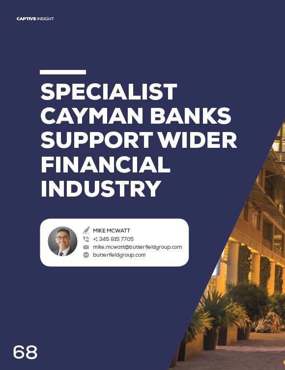 CAPTIVE INSIGHT SPECIALIST CAYMAN BANKS SUPPORT WIDER FINANCIAL INDUSTRY 68 MIKE MCWATT +1 345 815 7705 mike.mcwatt@butterfieldgroup.com butterfieldgroup.com