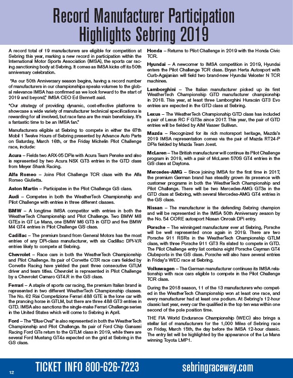 Manufacturers eligible at Sebring to compete in either the 67th