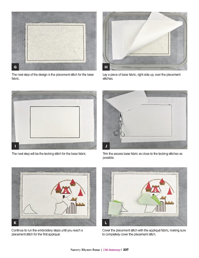 The next step will be the tacking stitch for the base fabric. Trim the excess base fabric as close to the tacking stitches as