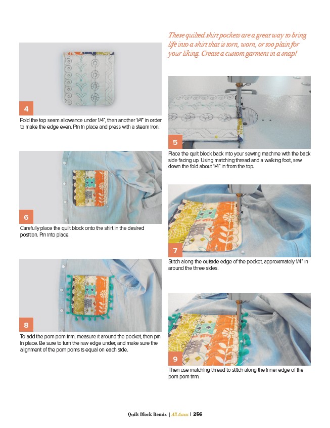 Stitch along the outside edge of the pocket, approximately 1/4” in
