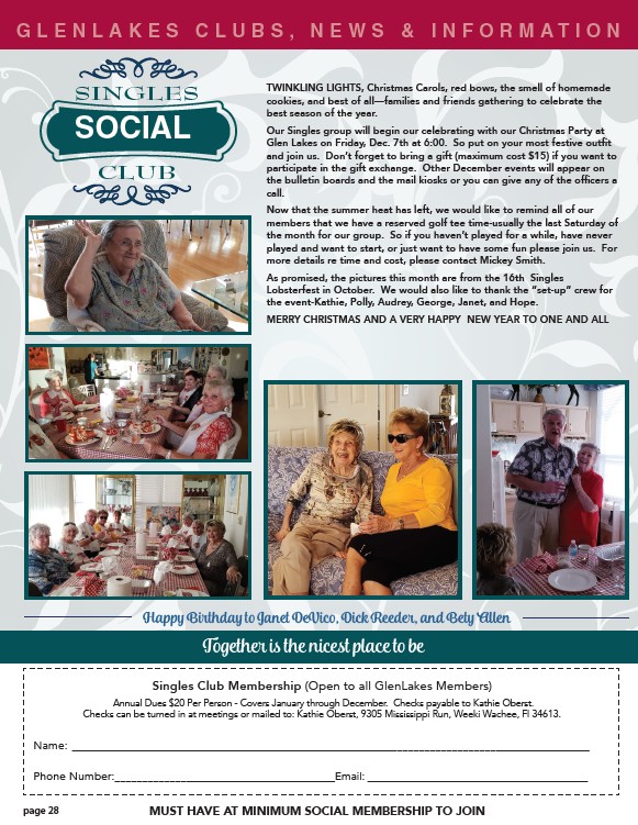 Checks can be turned in at meetings or mailed to: Kathie Oberst, 9305 Mississippi Run, Weeki Wachee, Fl 34613.