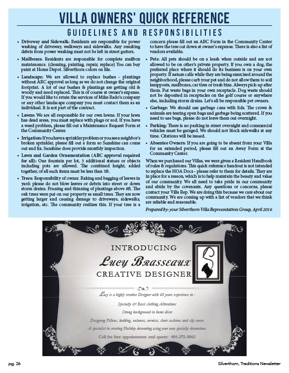 Prepared by: your Silverthorn Villa Representatives Group, April 2016