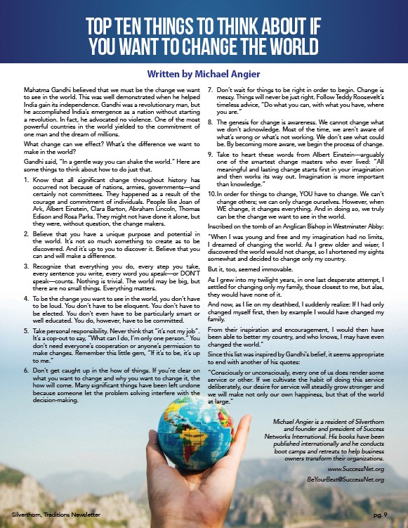 Gandhi said, “In a gentle way you can shake the world.” Here are