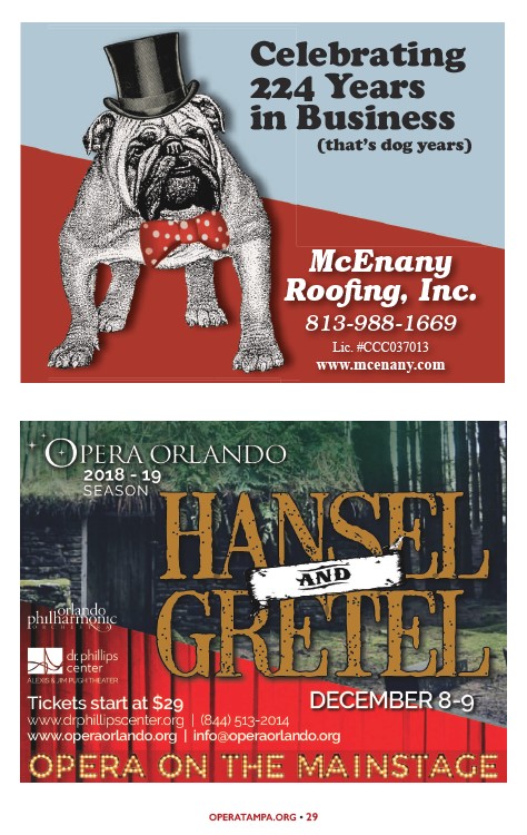 Celebrating 224 Years in Business (that’s dog years) McEnany Roofing, Inc. 813-988-1669 Lic. #CCC037013 www.mcenany.com OPERATAMPA.ORG • 29
