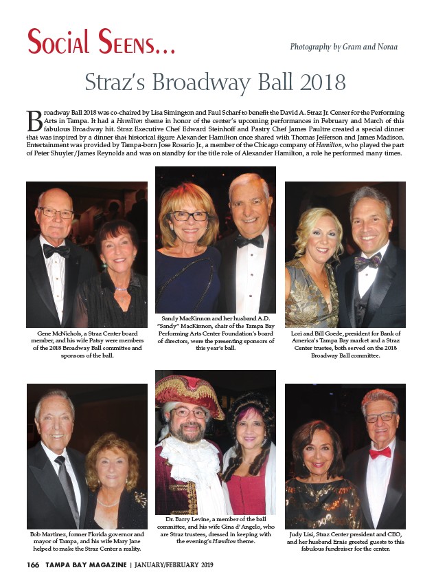 Broadway Ball 2018 was co-chaired by Lisa Simington and Paul Scharf to benefit the David A. Straz Jr. Center for the Performing