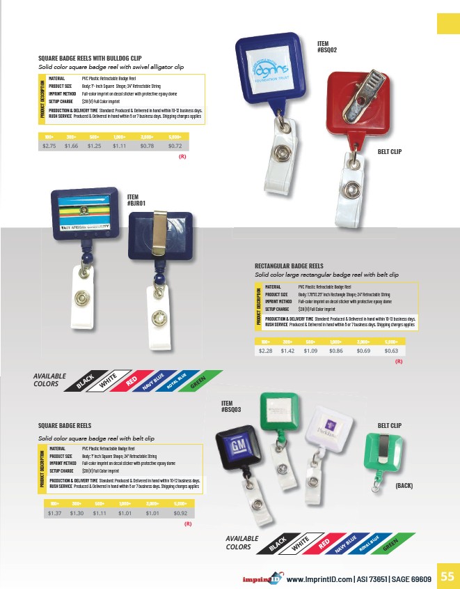 SQUARE BADGE REELS WITH BULLDOG CLIP