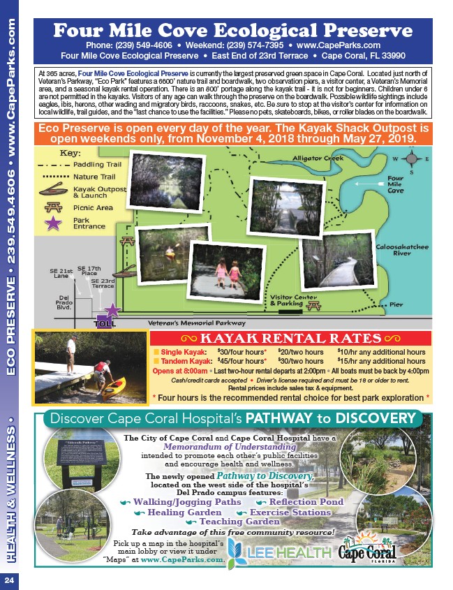24 HEALTH & WELLNESS • ECO PRESERVE • 239.549.4606 • www.CapeParks.com