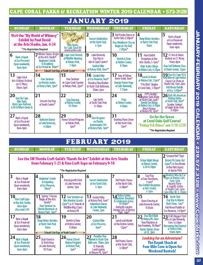 JANUARY-FEBRUARY 2019 CALENDAR • 239.573.3128 • www.CapeParks.com