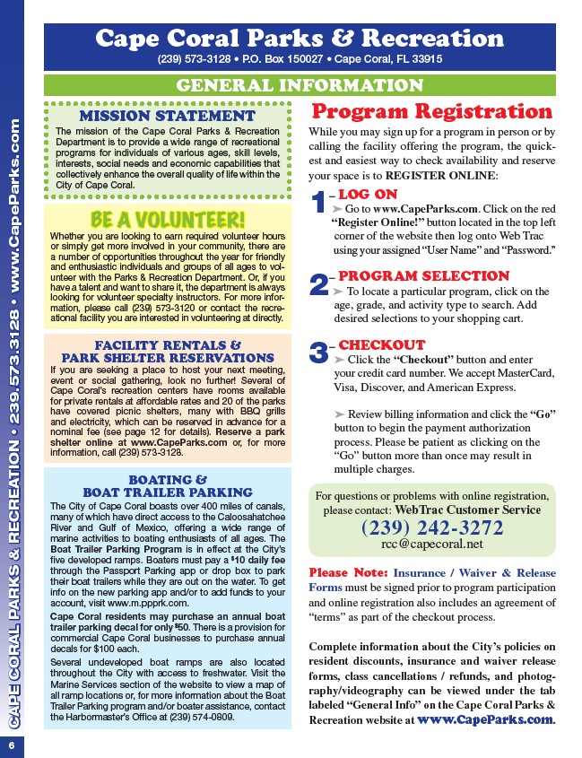 CAPE CORAL PARKS & RECREATION • 239.573.3128 • www.CapeParks.com 6