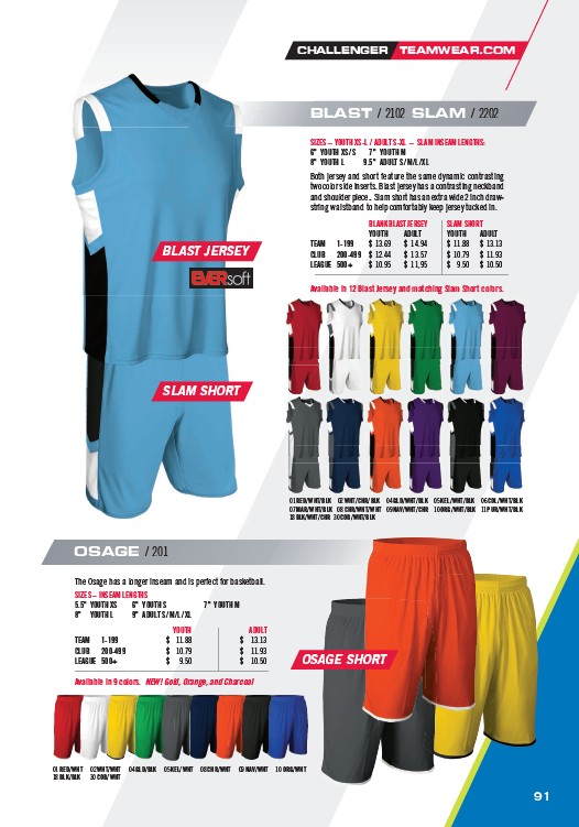 Available in 12 Blast Jersey and matching Slam Short colors.