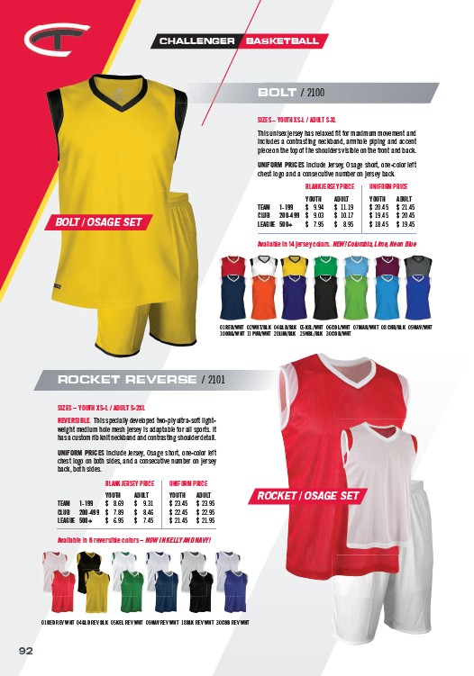 Available in 14 jersey colors. NEW! Columbia, Lime, Neon Blue