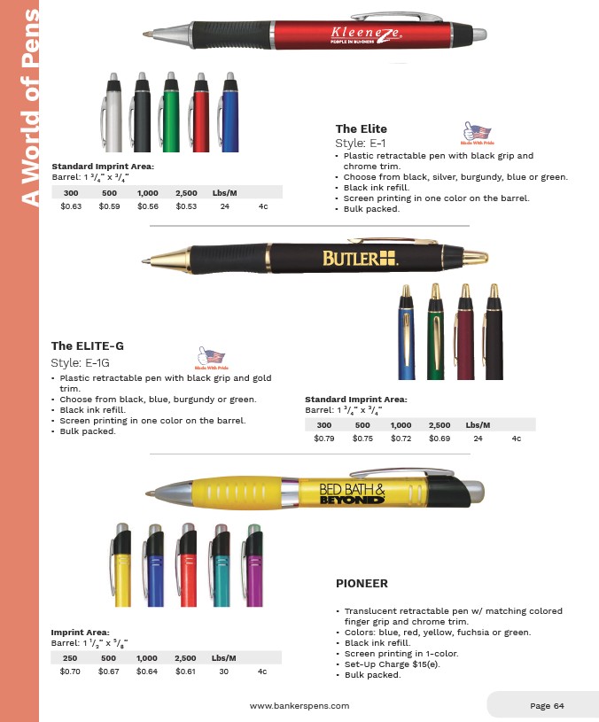 www.bankerspens.com Page 64 • Translucent retractable pen w/ matching colored