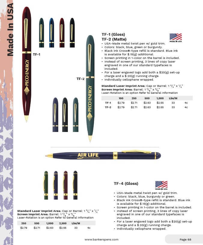 www.bankerspens.com Page 68 • USA-Made metal twist pen w/ gold trim.
