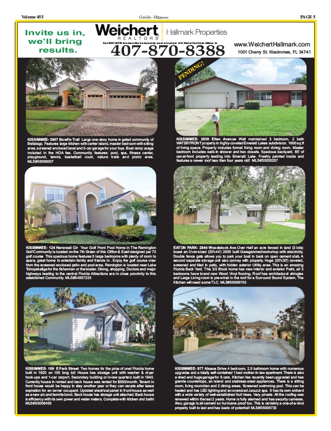results. 1001 Cherry St. Kissimmee, FL 34741 Each WEICHERT® franchised office is independently owned and operated. 2004 Weichert Real Estate Affiliates, Inc.