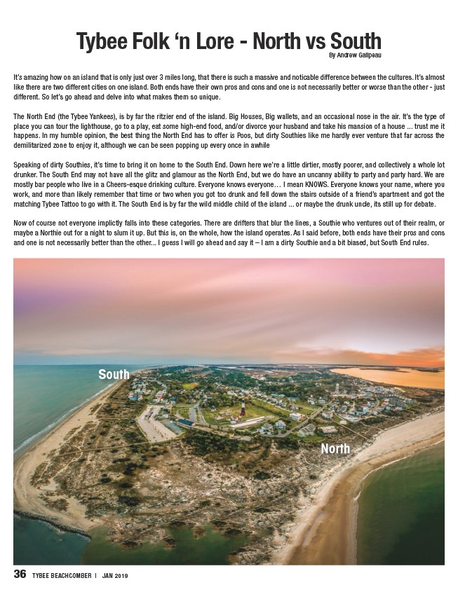 The North End (the Tybee Yankees), is by far the ritzier end of the island. Big Houses, Big wallets, and an occasional nose in the air. It’s the type of