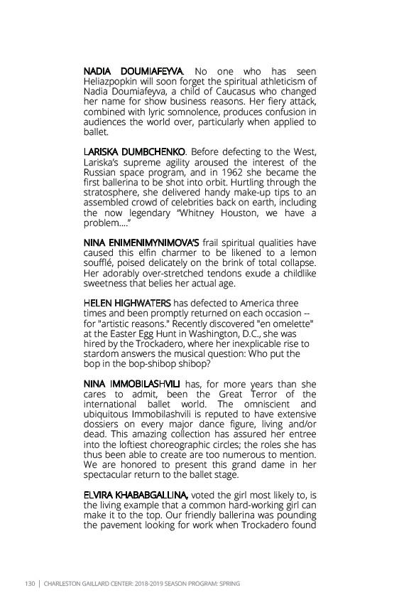 130 | CHARLESTON GAILLARD CENTER: 2018-2019 SEASON PROGRAM: SPRING
