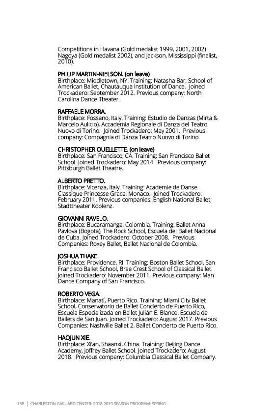 138 | CHARLESTON GAILLARD CENTER: 2018-2019 SEASON PROGRAM: SPRING