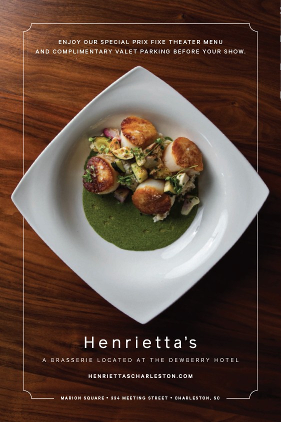 ENJOY OUR SPECIAL PRIX FIXE THEATER MENU AND COMPLIMENTARY VALET PARKING BEFORE YOUR SHOW. M A R I O N S Q UA R E • 3 3 4 M E E T I N G S T R E E T • C H A R L E STO N , S C