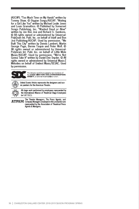 36 | CHARLESTON GAILLARD CENTER: 2018-2019 SEASON PROGRAM: SPRING