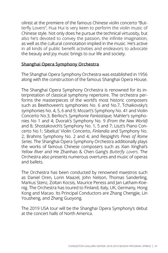 CHARLESTON GAILLARD CENTER: 2018-2019 SEASON PROGRAM: SPRING | 67