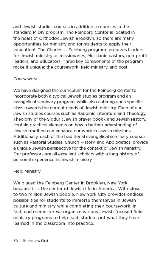 for Jewish ministry as missionaries, Messianic pastors, non-profit