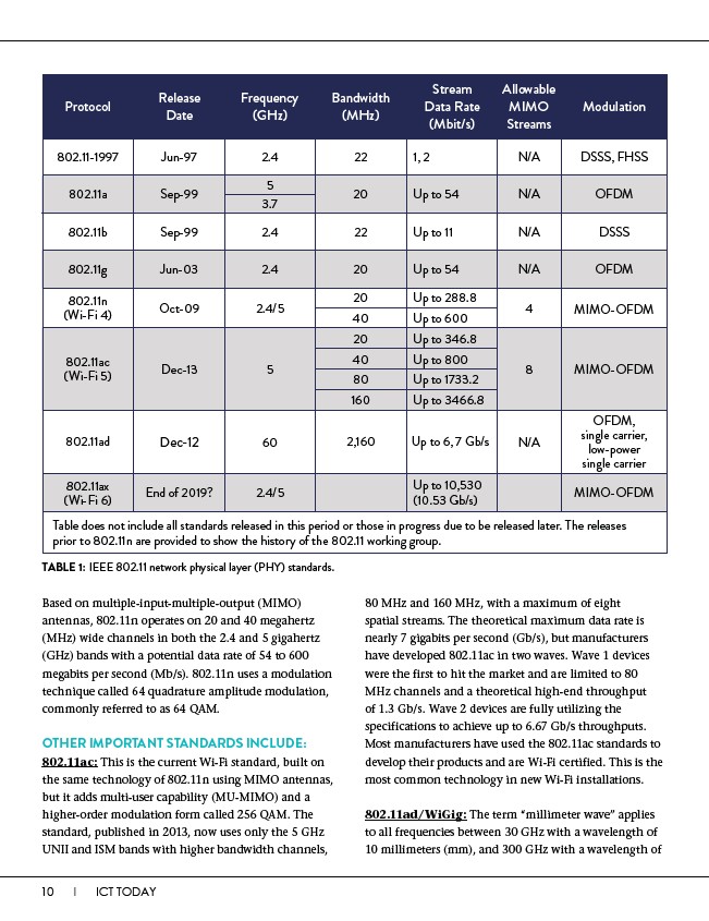 TABLE 1: IEEE 802.11 network physical layer (PHY) standards.