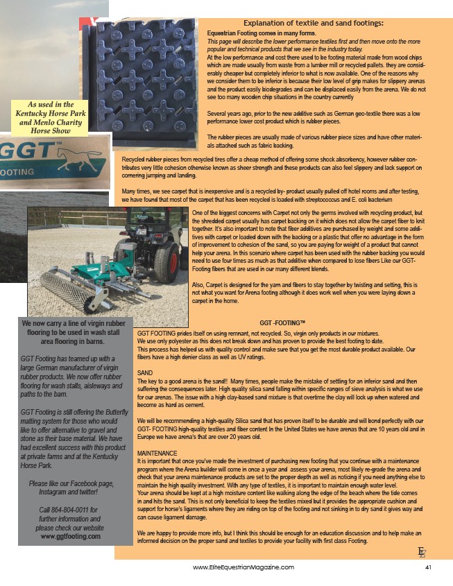 GGT- FOOTING high-quality textiles and fiber content In the United States we have arenas that are 10 years old and in