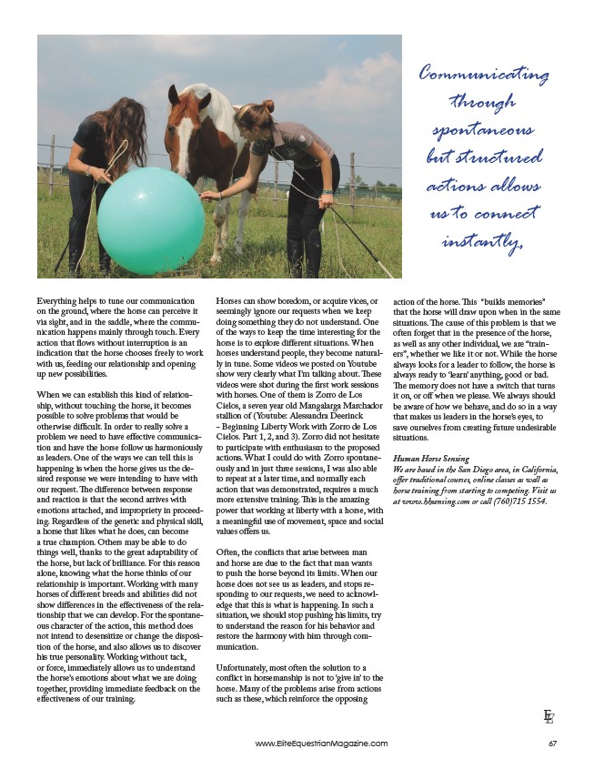 EE www.EliteEquestrianMagazine.com 67 Communicating through spontaneous but structured actions allows us to connect instantly,